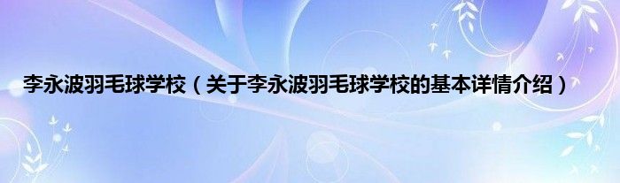 本文关于李永波羽毛球学校的基本详情介绍就讲解完毕,希望对大家有所帮助。