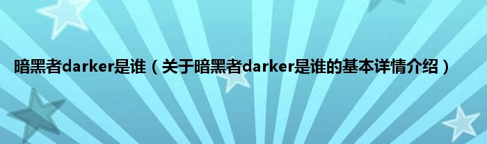 本文关于暗黑者darker是谁的基本详情介绍就讲解完毕,希望对大家有所帮助。