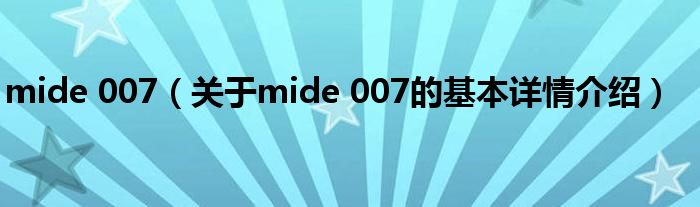 本文关于mide 007的基本详情介绍就讲解完毕,希望对大家有所帮助。