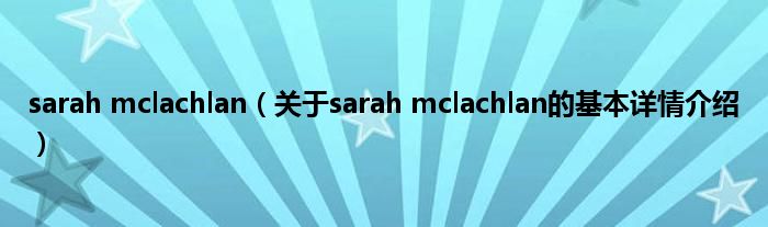 本文关于sarah mclachlan的基本详情介绍就讲解完毕,希望对大家有所帮助。