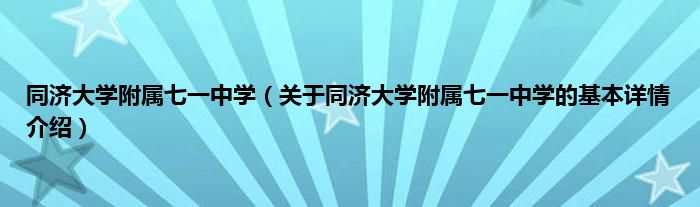 本文关于同济大学附属七一中学的基本详情介绍就讲解完毕,希望对大家有所帮助。