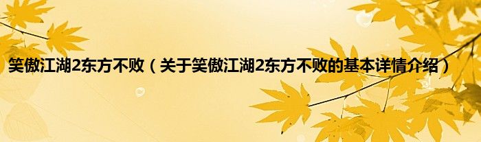 本文关于笑傲江湖2东方不败的基本详情介绍就讲解完毕,希望对大家有所帮助。