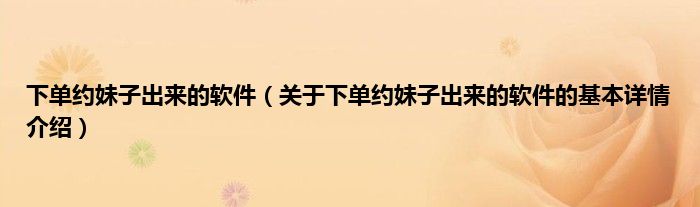 本文关于下单约妹子出来的软件的基本详情介绍就讲解完毕,希望对大家有所帮助。