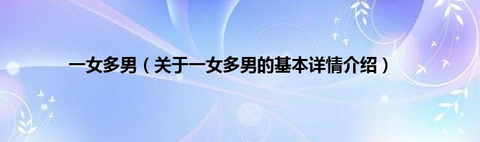 本文关于一女多男的基本详情介绍就讲解完毕,希望对大家有所帮助。