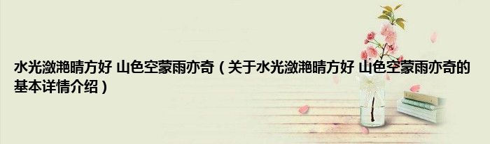 本文关于水光潋滟晴方好 山色空蒙雨亦奇的基本详情介绍就讲解完毕,希望对大家有所帮助。