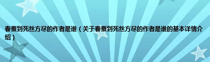 本文关于春蚕到死丝方尽的作者是谁的基本详情介绍就讲解完毕,希望对大家有所帮助。
