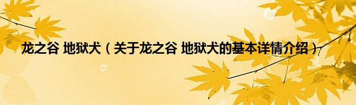 本文关于龙之谷 地狱犬的基本详情介绍就讲解完毕,希望对大家有所帮助。
