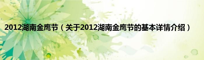 本文关于2012湖南金鹰节的基本详情介绍就讲解完毕,希望对大家有所帮助。