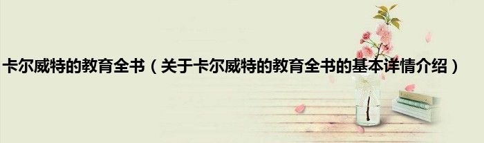 本文关于卡尔威特的教育全书的基本详情介绍就讲解完毕,希望对大家有所帮助。