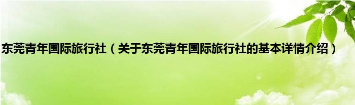 本文关于东莞青年国际旅行社的基本详情介绍就讲解完毕,希望对大家有所帮助。