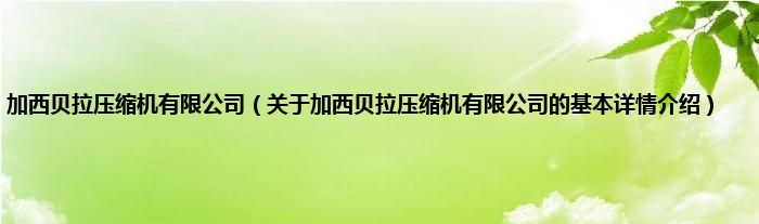 本文关于加西贝拉压缩机有限公司的基本详情介绍就讲解完毕,希望对大家有所帮助。