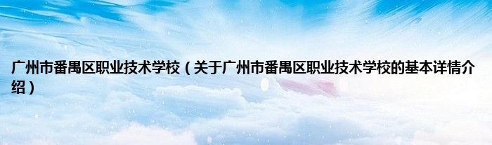 本文关于广州市番禺区职业技术学校的基本详情介绍就讲解完毕,希望对大家有所帮助。