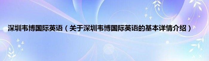 本文关于深圳韦博国际英语的基本详情介绍就讲解完毕,希望对大家有所帮助。