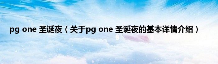 本文关于pg one 圣诞夜的基本详情介绍就讲解完毕,希望对大家有所帮助。