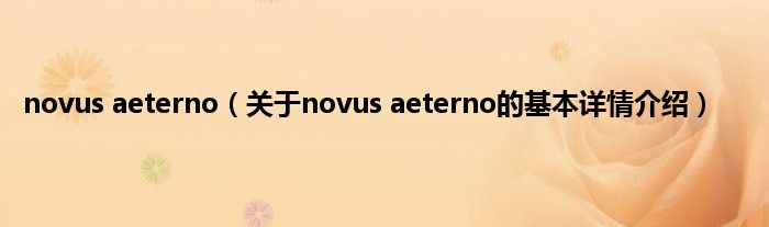 本文关于novus aeterno的基本详情介绍就讲解完毕,希望对大家有所帮助。