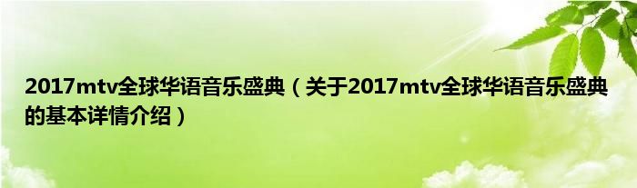 本文关于2017mtv全球华语音乐盛典的基本详情介绍就讲解完毕,希望对大家有所帮助。