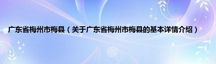 本文关于广东省梅州市梅县的基本详情介绍就讲解完毕,希望对大家有所帮助。