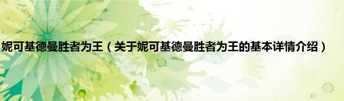 本文关于妮可基德曼胜者为王的基本详情介绍就讲解完毕,希望对大家有所帮助。