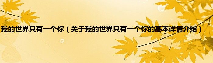 大家好我是小蝌蚪,我的世界只有一个你,关于我的世界只有一个你的基本详情介绍很多人还不知道,那么现在让我们一起来看看吧!