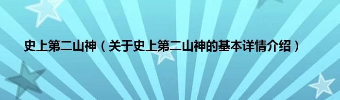 本文关于史上第二山神的基本详情介绍就讲解完毕,希望对大家有所帮助。
