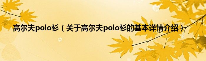 本文关于高尔夫polo衫的基本详情介绍就讲解完毕,希望对大家有所帮助。