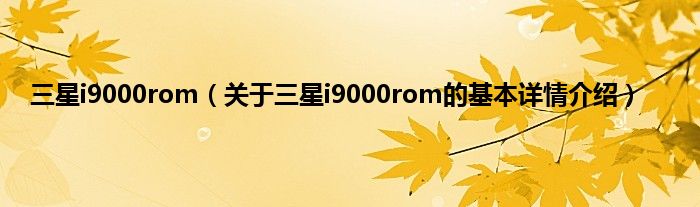本文关于三星i9000rom的基本详情介绍就讲解完毕,希望对大家有所帮助。