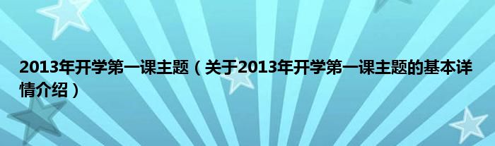 本文关于2013年开学第一课主题的基本详情介绍就讲解完毕,希望对大家有所帮助。