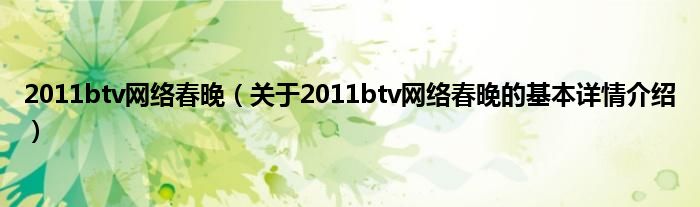 本文关于2011btv网络春晚的基本详情介绍就讲解完毕,希望对大家有所帮助。