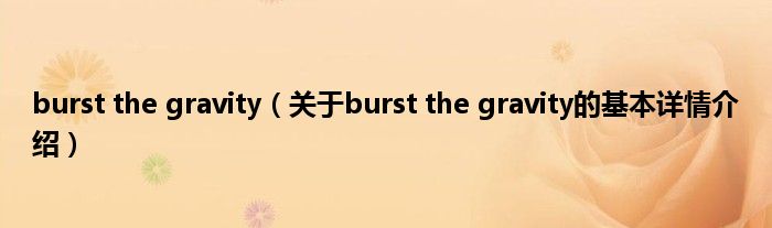 本文关于burst the gravity的基本详情介绍就讲解完毕,希望对大家有所帮助。