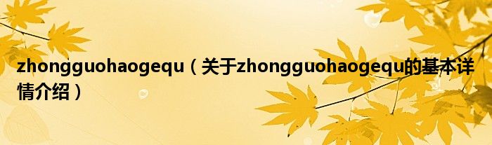 本文关于zhongguohaogequ的基本详情介绍就讲解完毕,希望对大家有所帮助。