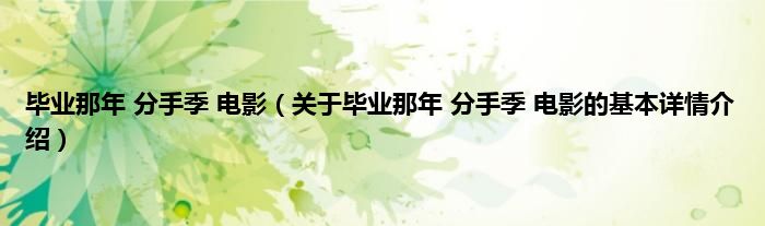 本文关于毕业那年 分手季 电影的基本详情介绍就讲解完毕,希望对大家有所帮助。