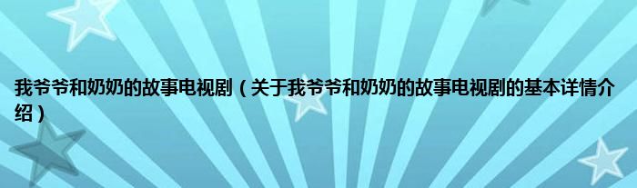 本文关于我爷爷和奶奶的故事电视剧的基本详情介绍就讲解完毕,希望对大家有所帮助。