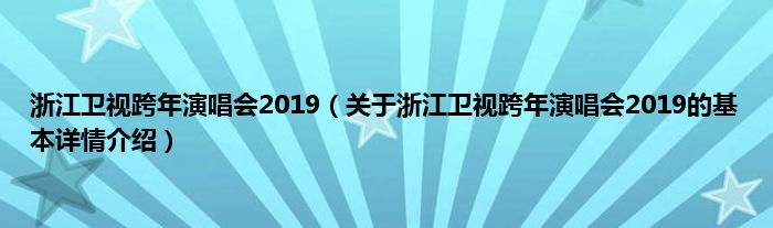 本文关于浙江卫视跨年演唱会2019的基本详情介绍就讲解完毕,希望对大家有所帮助。