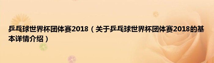 本文关于乒乓球世界杯团体赛2018的基本详情介绍就讲解完毕,希望对大家有所帮助。