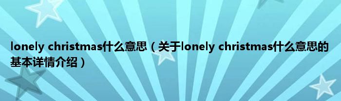 本文关于lonely christmas什么意思的基本详情介绍就讲解完毕,希望对大家有所帮助。