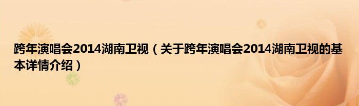 本文关于跨年演唱会2014湖南卫视的基本详情介绍就讲解完毕,希望对大家有所帮助。