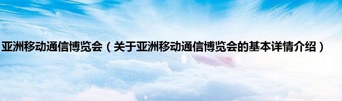 本文关于亚洲移动通信博览会的基本详情介绍就讲解完毕,希望对大家有所帮助。