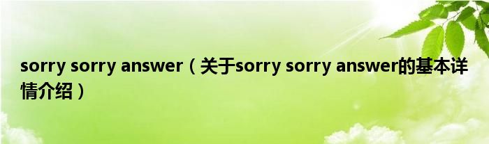 本文关于sorry sorry answer的基本详情介绍就讲解完毕,希望对大家有所帮助。