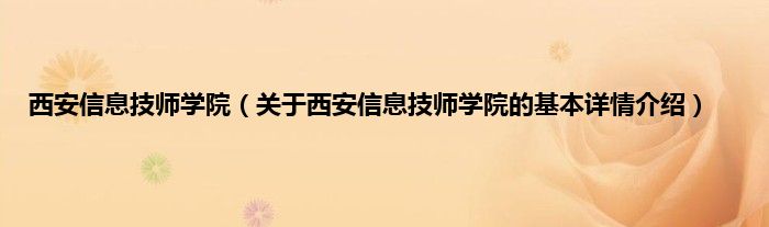 本文关于西安信息技师学院的基本详情介绍就讲解完毕,希望对大家有所帮助。
