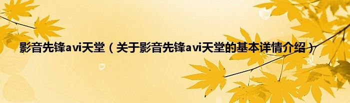 本文关于影音先锋avi天堂的基本详情介绍就讲解完毕,希望对大家有所帮助。