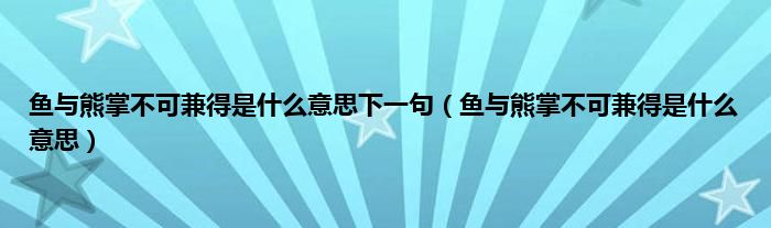 以上就是【鱼与熊掌不可兼得是什么意思下一句,鱼与熊掌不可兼得是什么意思】相关内容。