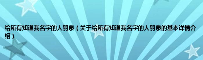 本文关于给所有知道我名字的人羽泉的基本详情介绍就讲解完毕,希望对大家有所帮助。