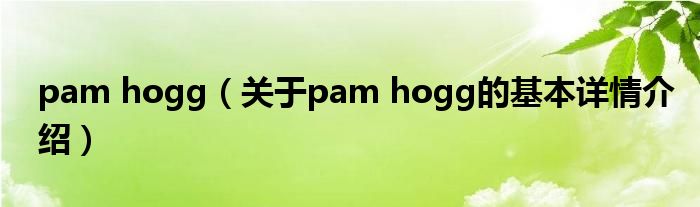 本文关于pam hogg的基本详情介绍就讲解完毕,希望对大家有所帮助。