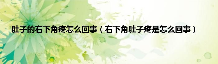以上就是【肚子的右下角疼怎么回事,右下角肚子疼是怎么回事】相关内容。