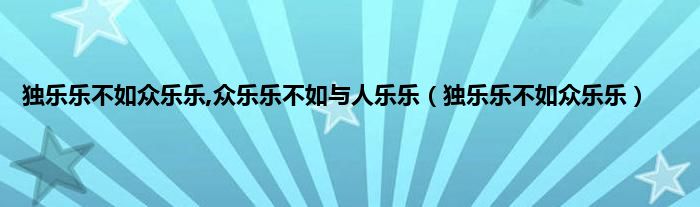 大家好,小问来为大家解答以上问题。独乐乐不如众乐乐,众乐乐不如与人乐乐,独乐乐不如众乐乐这个很多人还不知道,现在让我们一起来看看吧!
