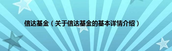 本文关于信达基金的基本详情介绍就讲解完毕,希望对大家有所帮助。