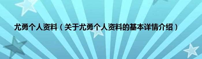 本文关于尤勇个人资料的基本详情介绍就讲解完毕,希望对大家有所帮助。