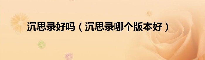 以上就是【沉思录好吗,沉思录哪个版本好】相关内容。