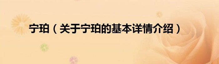 大家好我是小蝌蚪,宁珀,关于宁珀的基本详情介绍很多人还不知道,那么现在让我们一起来看看吧!