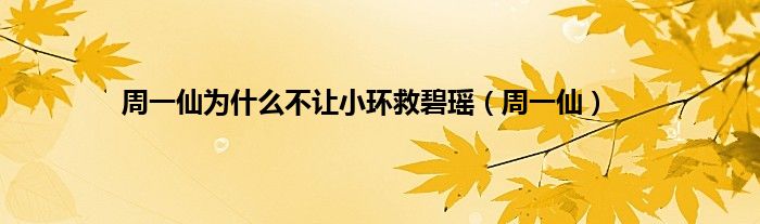 以上就是【周一仙为什么不让小环救碧瑶,周一仙】相关内容。